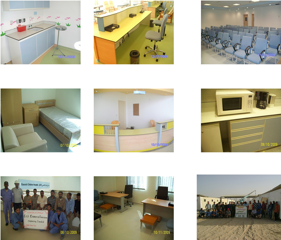 Procurement of both Domestic and General Furniture for the entire Basra Children Hospital in 2008. The client is UNDP. The total number of project items that provided is 123 and the total quantity is 5,373 units. The supplied Furniture included Office furniture of different designs.